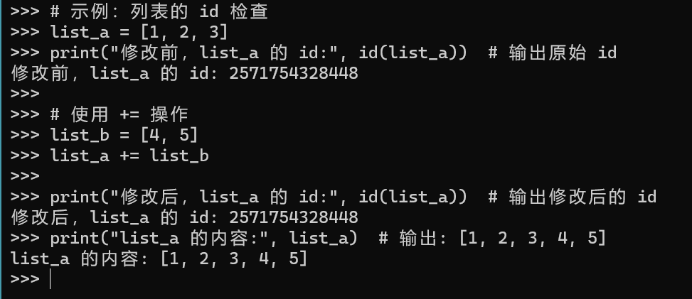 print("修改前,list_a 的 id:", id(list_a)) # 输出原始 id