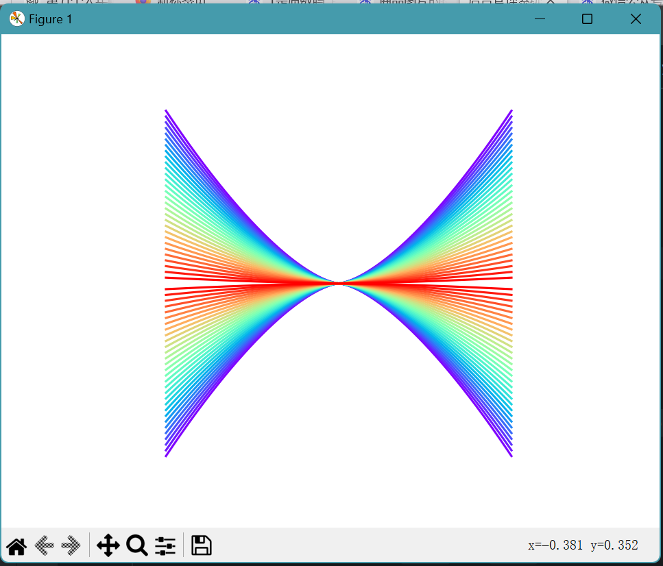 np.abs(x)**(1.5)控制图形曲线形状。1 - i / num_lines动态调整曲线高度。绘制线条: