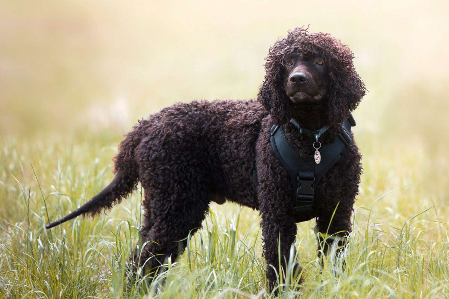 爱尔兰水猎犬属于大型犬种,肩高在53至61厘米,体重约20至30千克。它最具标志性的特征是那层密集且紧密的卷毛,这种卷毛防水性极强,是它在水中工作的天然“装备”。