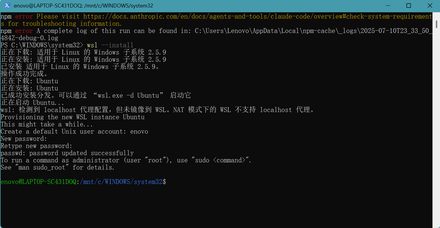 🧭 操作步骤:在 WSL 中安装 Claude Code