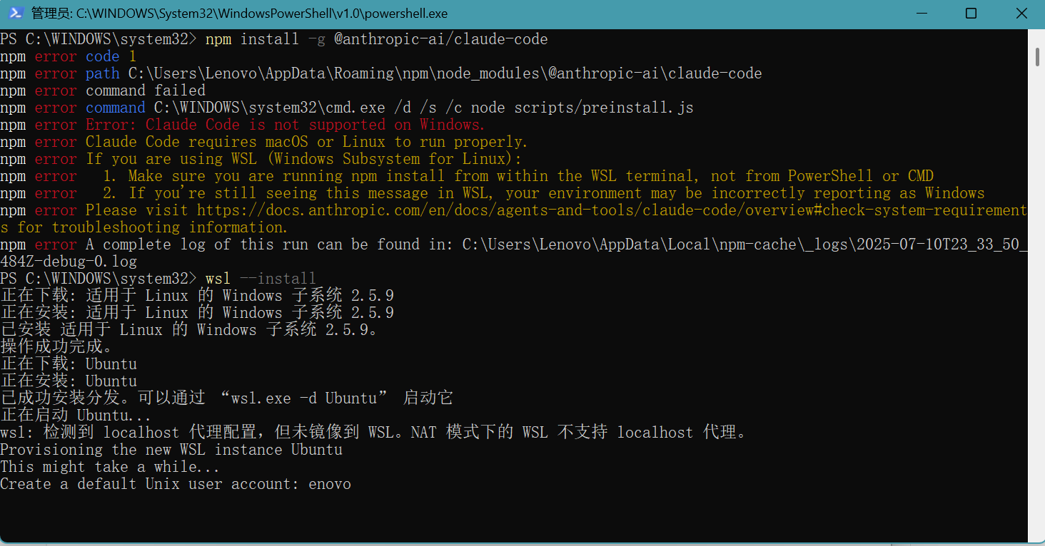 🧭 操作步骤:在 WSL 中安装 Claude Code